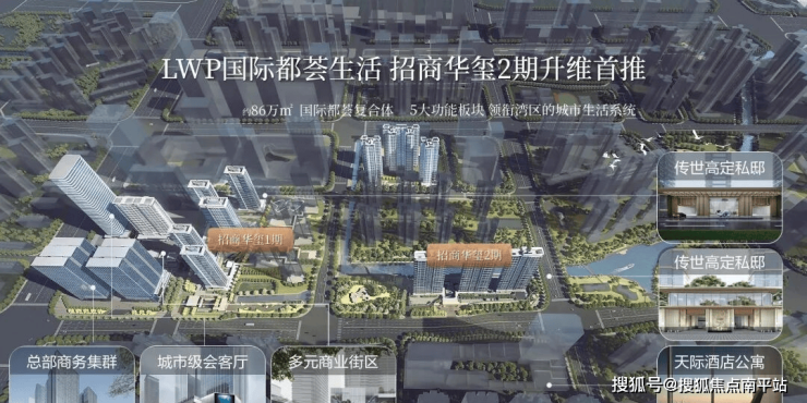 项目源自千灯湖宝华村旧改,约86万㎡连片开发实现千灯湖价值升维,商业、办公、公园、住宅等多业态融合,实现 “城市超核资源升级”的LWP高感社区。