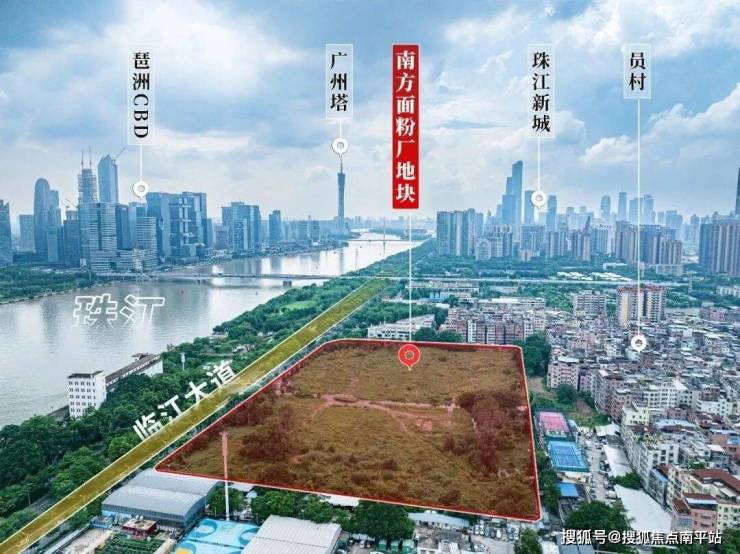 面粉厂地块位于临江大道旁,与珠城直线距离仅约600m;隔着净水厂,就是广州豪宅标杆汇悦台,二手成交单价一度超30万/平。