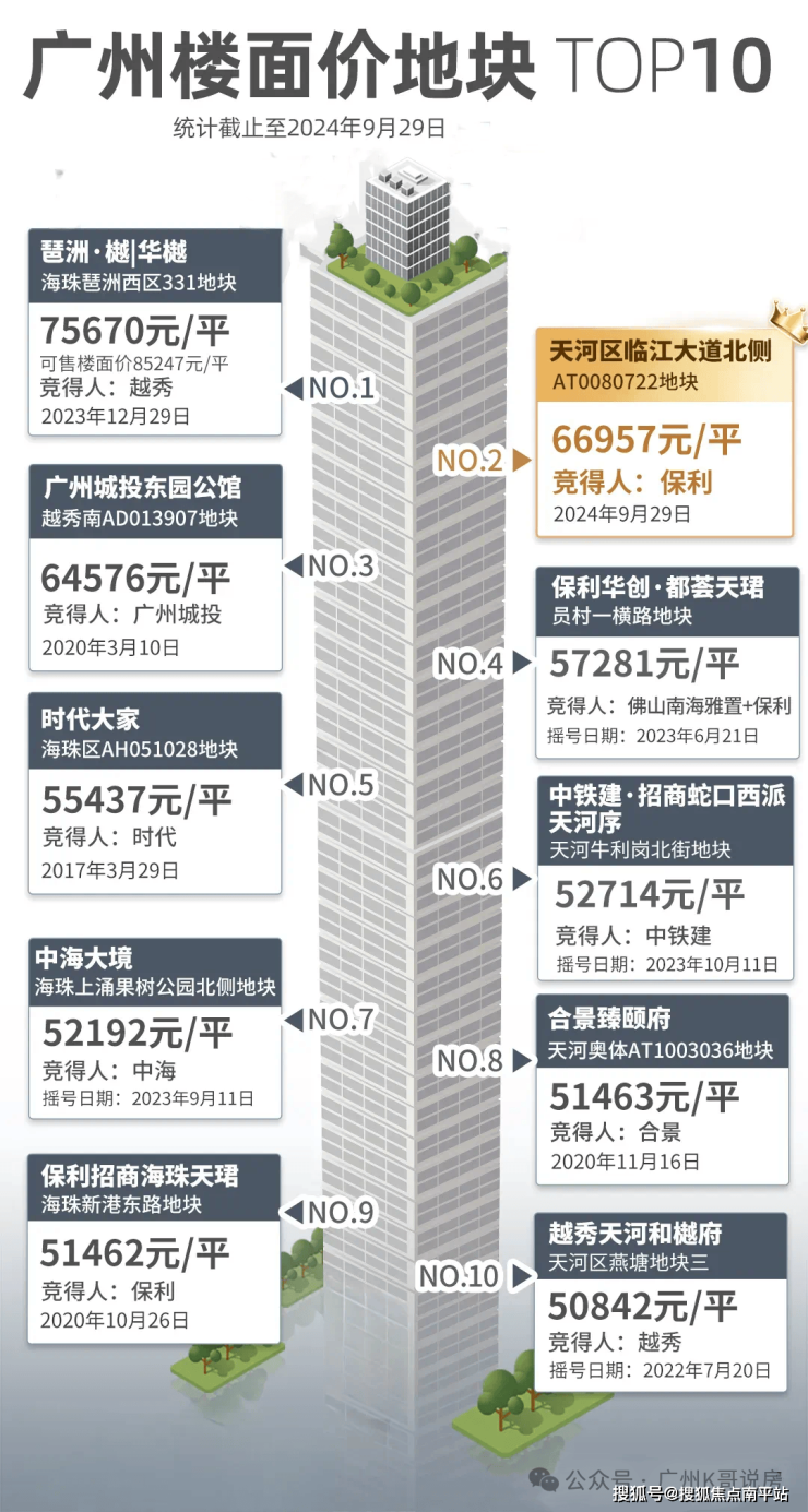 继地价榜第四的员村一横路地块(现保利华创都荟天珺)后,保利在珠江新城再下一城,顺手创造了天河地王。 跻身广州楼面价TOP2,仅次于琶洲地王。