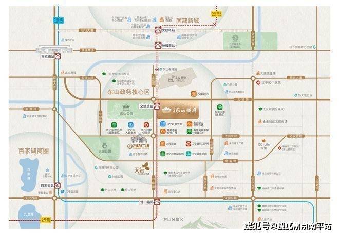 江宁区委区政府、江宁人民大会堂等驻地于此,集聚了江宁区90%政府资源,东山更是成为发展的决策中枢与精神源心。