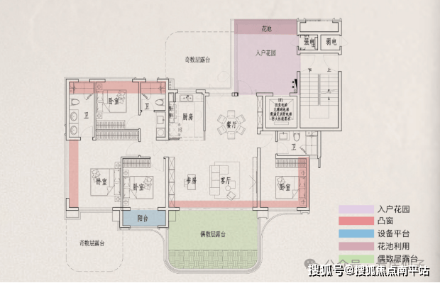 2、超四代住宅,南北双花园,奇数层4个、偶数层3个外挂!(2个露台、入户花园、阳台);