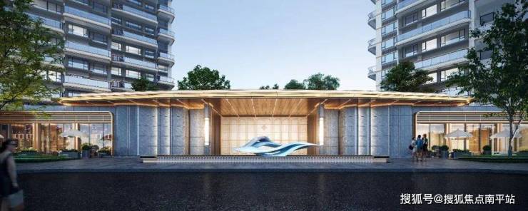 一进入府:广州第一个四代居“场景式体验”社区,酒店式主入口礼序形象,对景发光云石过渡空间。