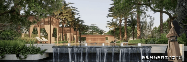 星级泳池 | 参考海滨岛屿度假风格,底部采用巴厘岛绿马赛克,甄选约9米高名贵树种银海枣