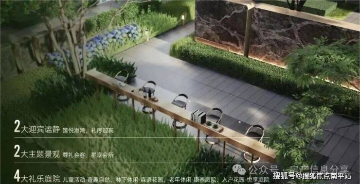 |“臻享森境”景观会客厅将自然之美与精致工艺融为一体,打造景观会客厅、艺术水景、户外吧台、阳光草坪等静谧空间。