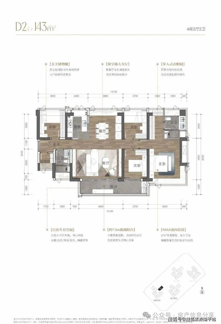 建面约108-143㎡海幕纯四房 ,臻藏级南向湾海视野,LDKB人性化动线设计,格局方正、高实用率,打造独立玄关、双飘窗主卧、步入式衣帽间等个性化空间。