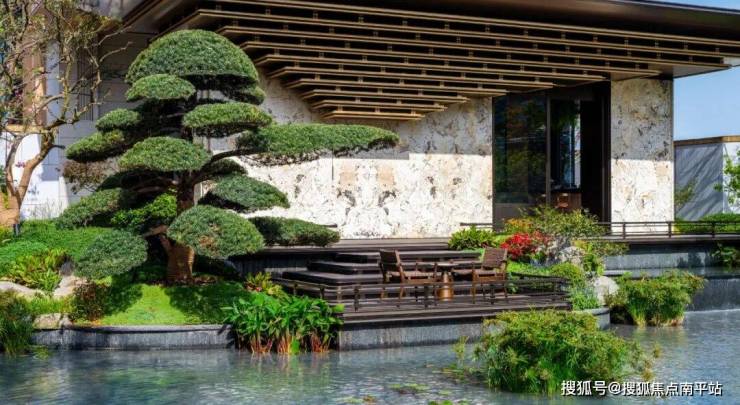 430㎡锦鲤池畔 的“味象亭”,四季花植、 50年树龄罗汉松 与拱桥、亭台、水榭交织成“立体江南”。