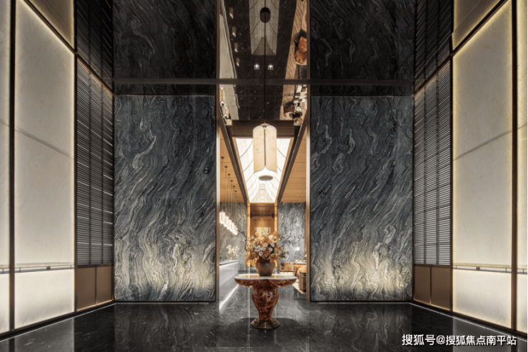 前厅的设计则是一场“闽南文化与现代美学”的隔空对话。踏入便恍若来到 上海璞丽酒店的孪生空间——5米通高的水云纱奢石墙 面如海浪凝固, 皇家白玉石与古奇黑大理石 (与米开朗基罗雕塑同源)的光影交织,让每一步都踏在“艺术与历史的琴弦”上。