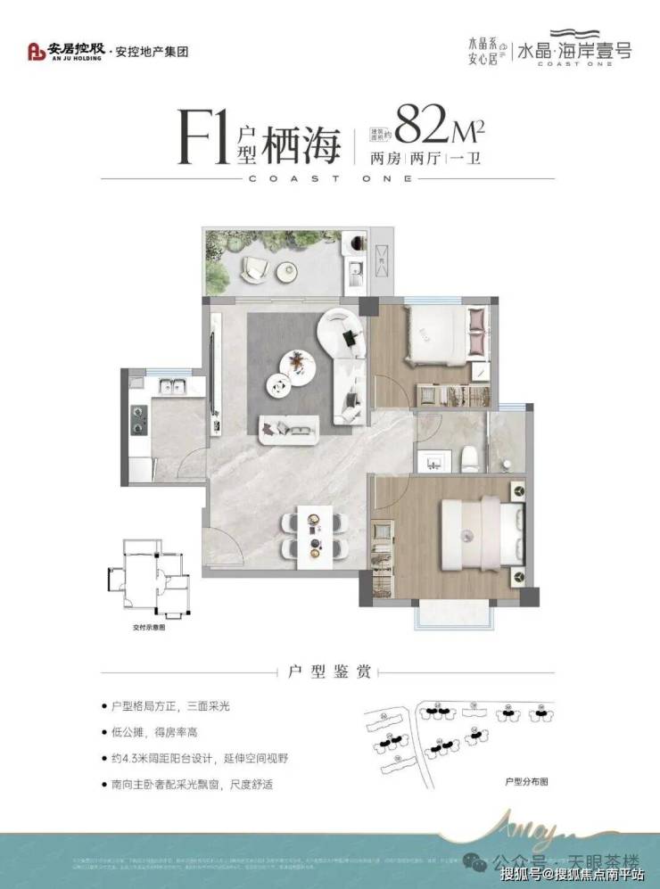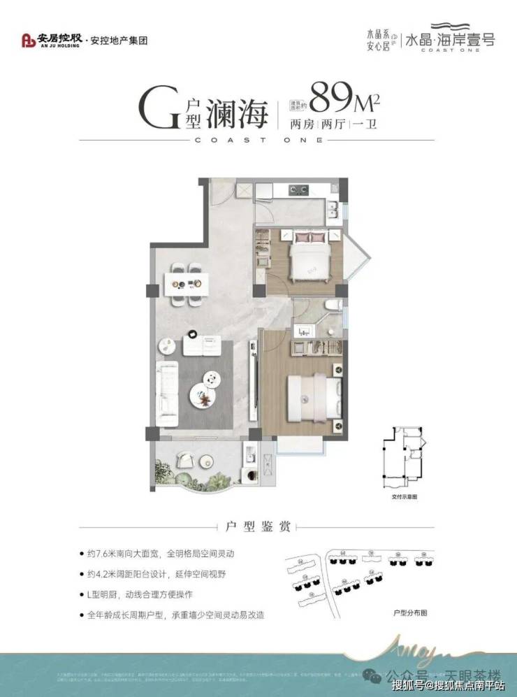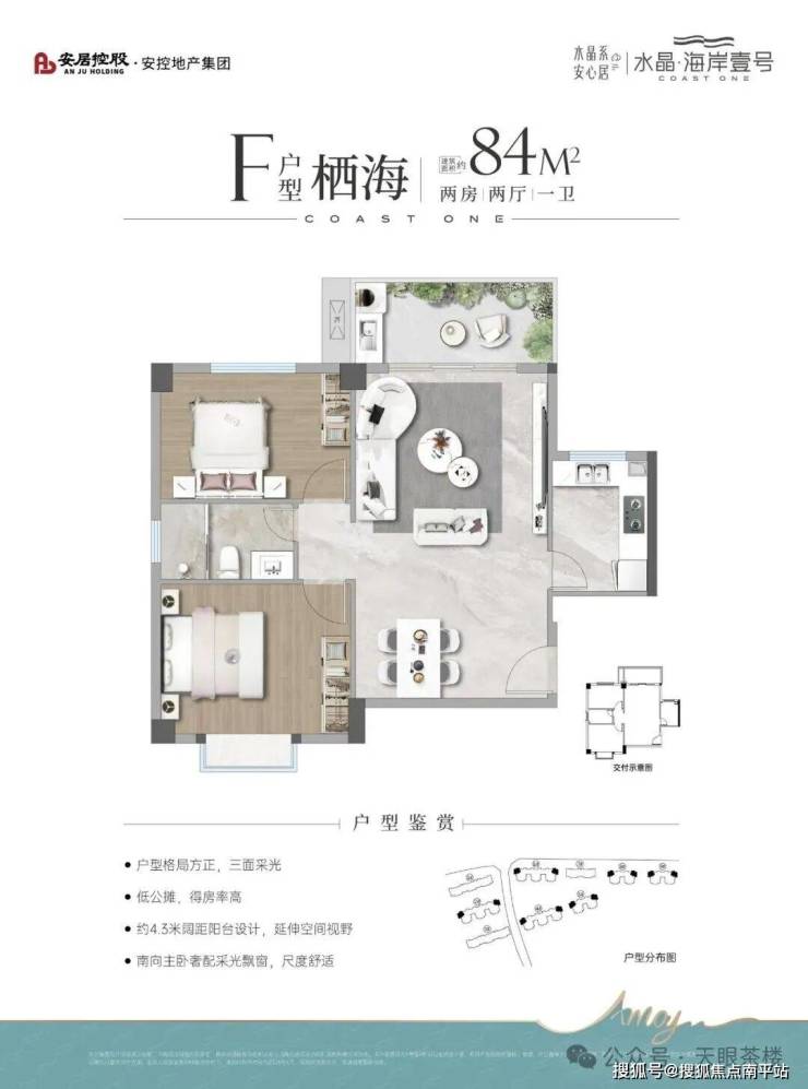水晶海岸壹号是北部高崎创新中心片区唯一且临海在售新盘,据销售说产权证从2021年开始算。由于是约15层的小高层,所以 户型使用率很高,普遍90%以上 。如84-89㎡客厅及阳台面宽高达4.2-4.3米, 目前其它在售新盘110平以上才有的尺度 。