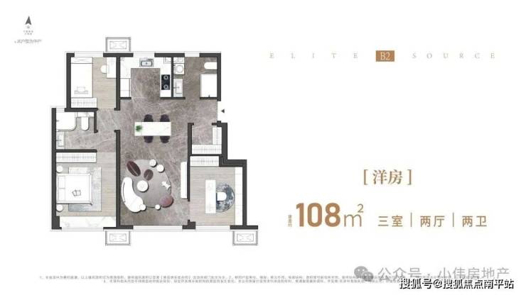 🔥B户型|洋房108㎡三室两厅两卫: