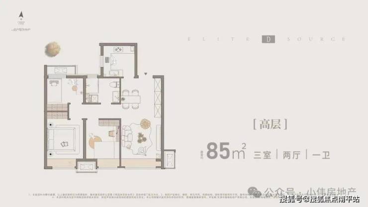 🔥D户型|小高85㎡三室两厅一卫: