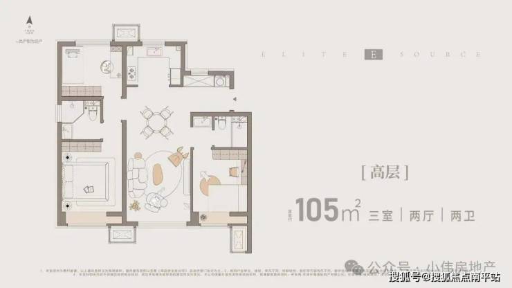 🔥E户型|小高105㎡三室两厅两卫: