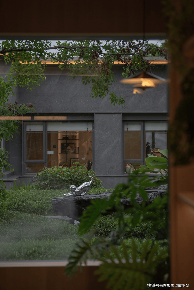 围合交融的空间里,漏景、水声、光影与植物气息交织,理性秩序中藏着感性流动。临水而居、择水而憩,以与自然共生之心,绘就山水相融的宁静画卷。