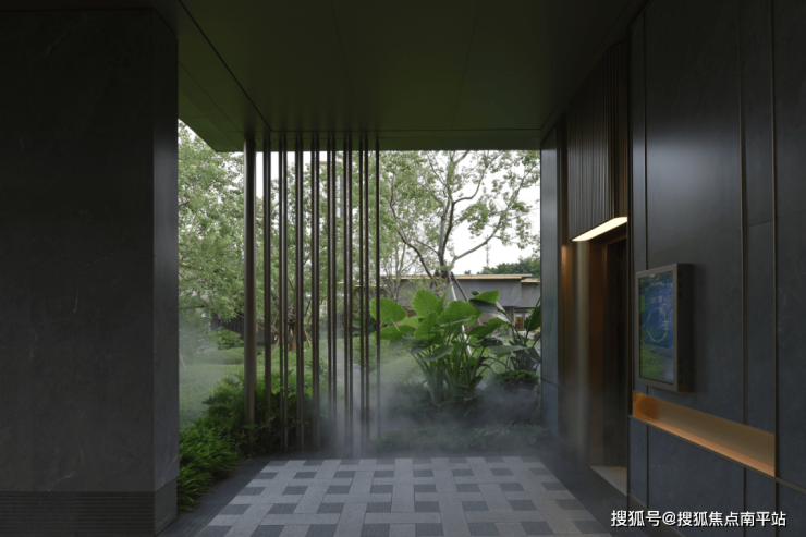 以水为引,拾阶而上。奢石蓝钻与金属碰撞奢感,映翠绿显雅致活力。地台水景点睛,强化仪式与层次,流水提格调,自然与现代美学交融,尽显临街雅境静谧。