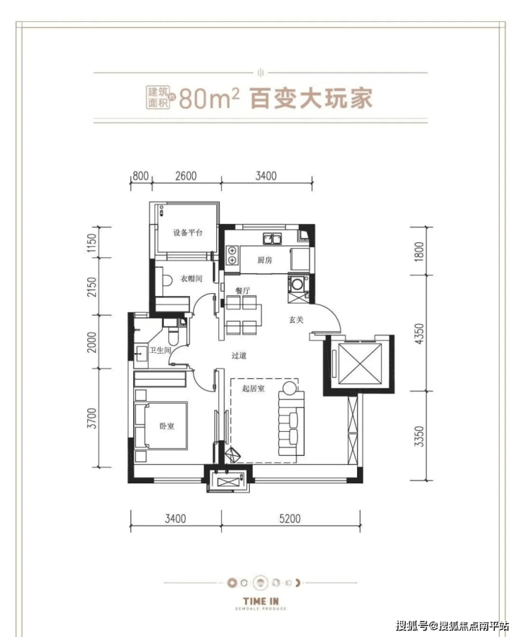 •80㎡户型图:总价120万起,单价15000元/㎡起,首付18万起