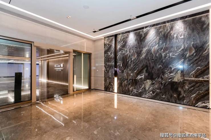 地下车库更是引入了星级酒店式落客系统,还原表里如一的高级质感。入口区域以大理石做地面,以浅色岩石+不锈钢铺贴墙面,墙顶有“星空顶”,高端大气上档次。