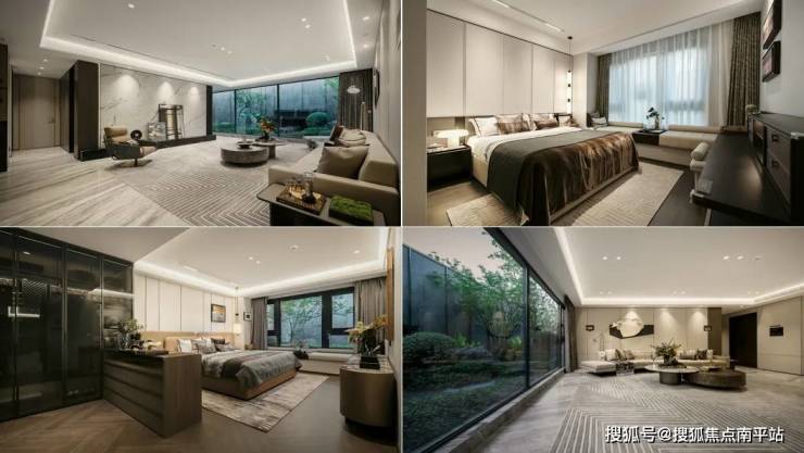 其次就是高标准的公区打造,作为片区内首个实景展示的项目,在这里,每一个细节都彰显着项目对品质的极致追求。从地上地下双入户酒店式精妆大堂体系,到"江山五境"的园林景观主题,全方位提升归家体验感。