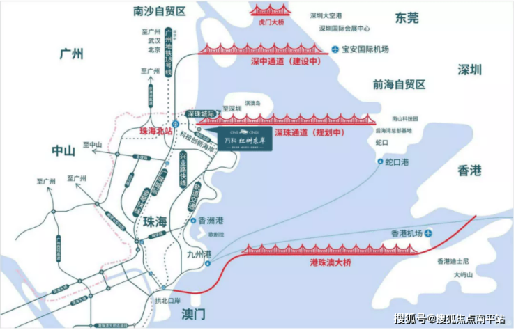 3通道:深中通道(建设中,预计2024年建成通车)、深珠通道(规划中)及港珠澳大桥(已通车)。据媒体报道,深珠通道通车后,唐家到深圳前海只需30分钟。