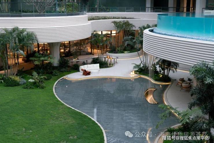 以超前手法打造约320㎡无边际悬空泳池,通过流水叠瀑链接负一层会所,于此可举办落日派对、池边社交,生活场景由此无限延伸。