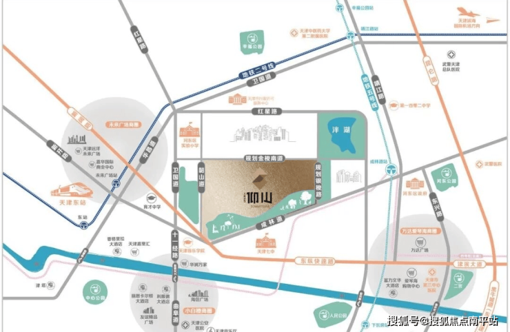 · 项目位于真正的市中芯主干道旁,驱车10分钟以内即达小白楼海信、丽思卡尔顿、津塔等市中芯地标级配套,是目前市中芯唯一10分钟半径包揽100年繁华的尊贵之地。
