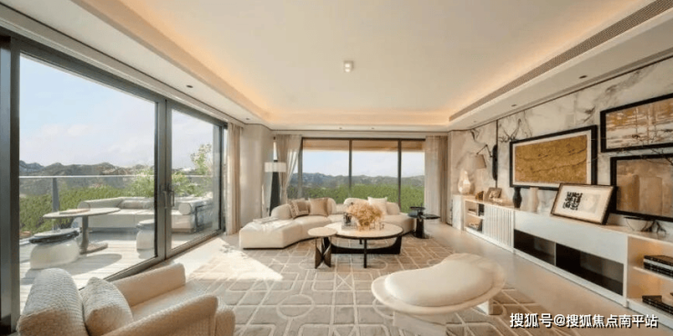 南向约6米的巨幕落地窗,华润选用的80系列隔热型材铝合金搭配Low - E玻璃,三玻两腔中空玻璃内充氩气,性能比国家现行标准基础提升约20%左右,保温、隔热效果更好。