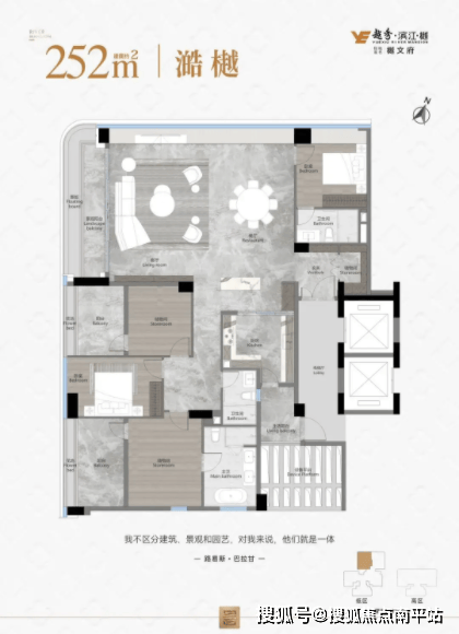 目前越秀观樾主推 126-252㎡的三至五房,还有 210㎡的合墅产品在售,所有户型均为纯板式设计,大部分做到了南北通透,得房率超 85%,部分户型因为赠送飘窗和阳台面积,实用率能达到 110%。