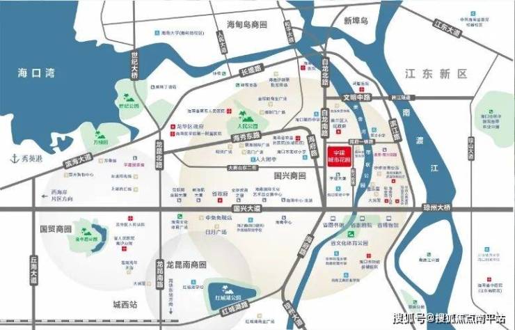 地处龙头位置,周边美舍河、南渡江、海甸溪三江汇聚,紧邻美舍河,部分高层可远眺琼州海峡,水系缠绕,聚水聚气,正可谓滨水宜居的风水宝地。
