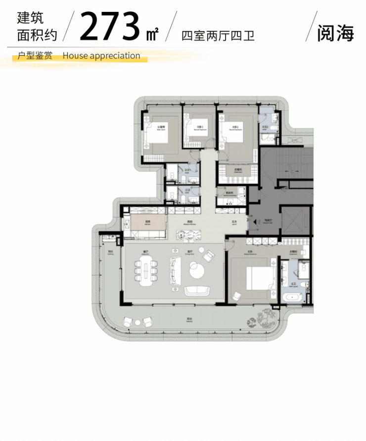 再搭配上270°大转角环绕阳台,这意味着每一户都拥有极致视野与通透格局,海景不再被遮挡,而是被完整收藏。