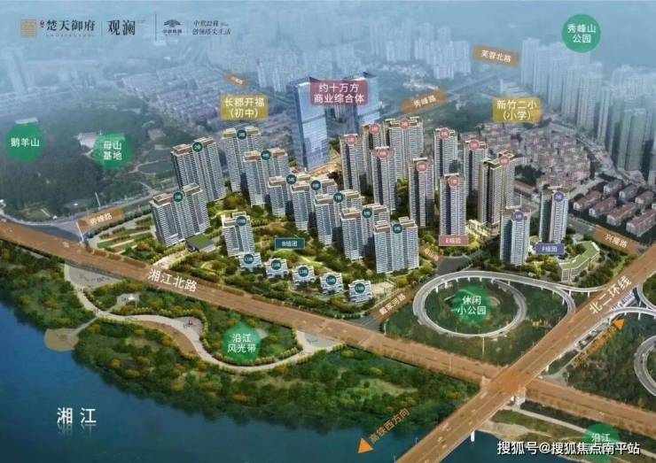 •背山面水,项目位于开福区湘江大道与三汊矶大桥交汇处,背靠鹅羊山森林公园,与湘江一路之隔,出门即是约1.5km湘江风光带。