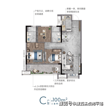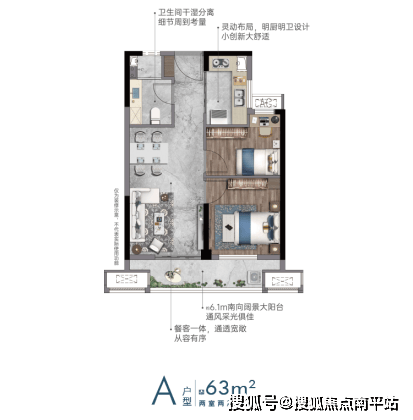 项目建筑面积约63-142m²二至四房灵动空间,满足多样置业需求;户型布局充分考虑人居尺度以及通风采光;大面宽短进深设计、跑马式阳台、270°景观飘窗,纵享环幕视野。