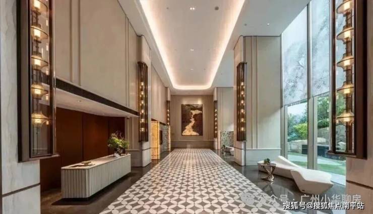 约8米挑空酒店风大堂,搭配奢石,沿袭香港豪宅理念,空间感极为气派。
