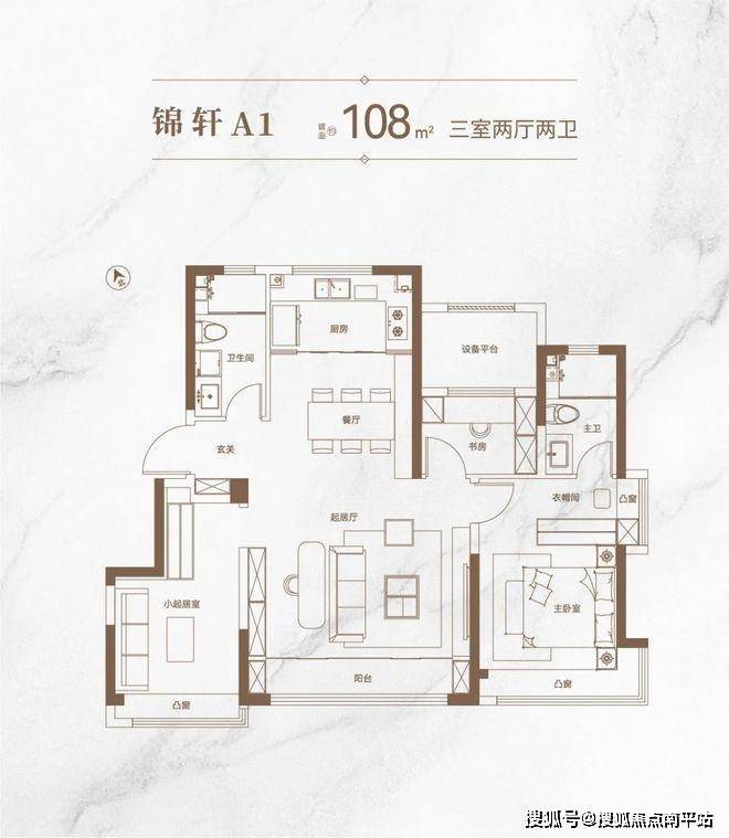108㎡户型:独立入户玄关,满足收纳需求;约5.2m方正宽厅,待客、生活皆从容;落地宽景阳台,LDK动线,提升生活居享舒适度;奢阔主卧套房,配备独立卫生间/衣帽间,其中部分户型更设计了转角飘窗,尽享270°广角视野。