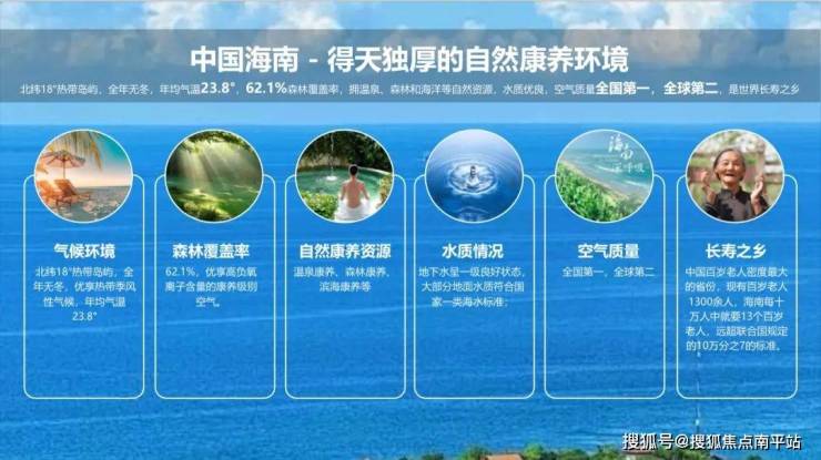 海南省环境与气候:世界的旅居度假胜地。北纬18°是全世界著名的度假胜地,有夏威夷、圣地亚哥、加勒比海、海南岛等,海南岛年均气温25°气候宜人,森林覆盖率62%,每立方厘米含有负氧离子12000多个单位,空气质量为全国第一。拥有美誉众多,旅居度假天堂、长寿之乡、全时康养、免税天堂、拥有400余种热带水果、天然海鲜66种等等。来海南实现水果自由,海鲜自由,吃货们的天堂 。随着自由贸易港封关在即-进入2025年封关倒计时-自由贸易港立法落地,海南将成为全球营商环境、气候环境、福利政策多重优势并存的自由贸易港,海南自由贸易港未来的发展前景不可限量。
