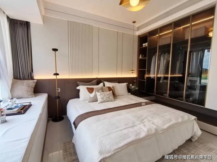 主卧采用了套房设计 ,相邻一侧还有一处阳台,可当作书房、茶室等,这样与主卧相邻形成了一个大套房,实用之上奢华尽享,且采光、通风、观景效果俱佳。