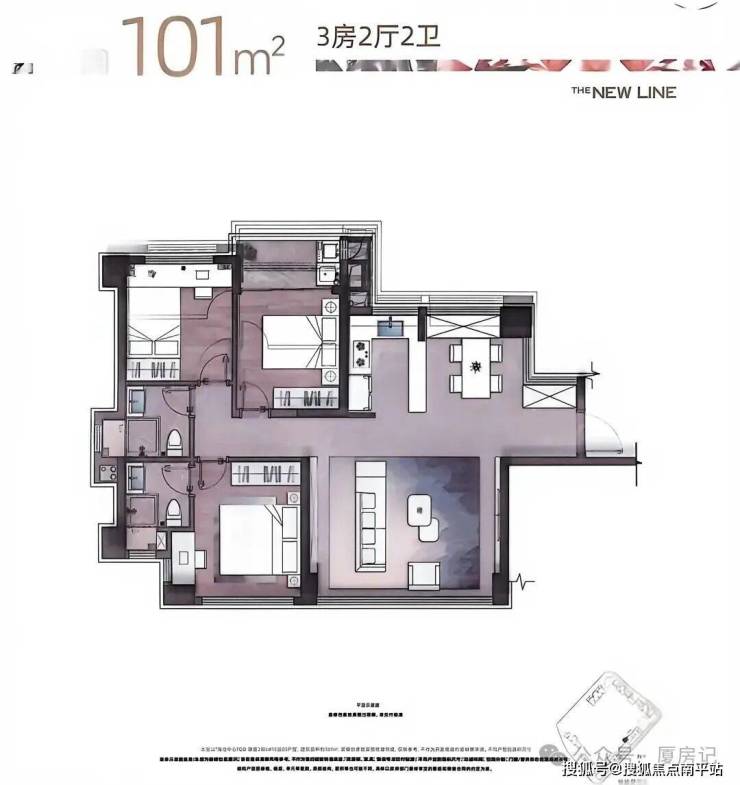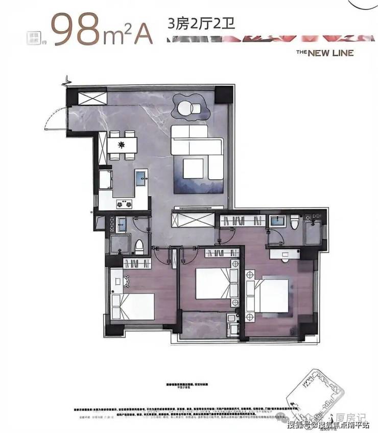 •推出63㎡-73㎡-87㎡-98㎡-101㎡-113㎡三房等小户型产品,得房率87%,部分户型通过飘窗改造增加空间尺度,部分边套户型采用270°环幕玻璃设计;