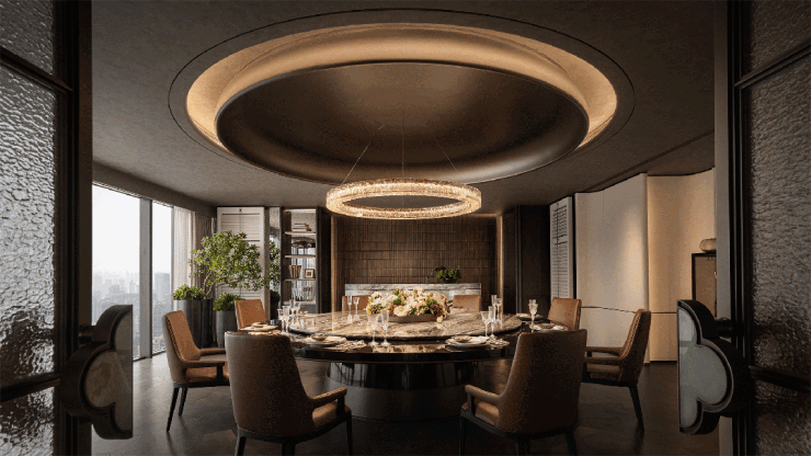 长沙瑞玺在33层云端会所,规划私宴厅、VIP茶室、行政酒廊等功能布局,满足业主商务接待与圈层社交多元需求。