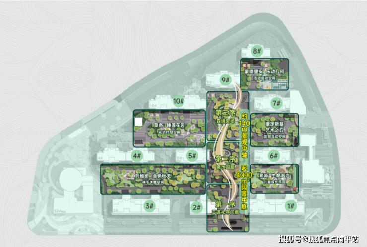 2、楼栋前的园林组团,景观立体,面积大!