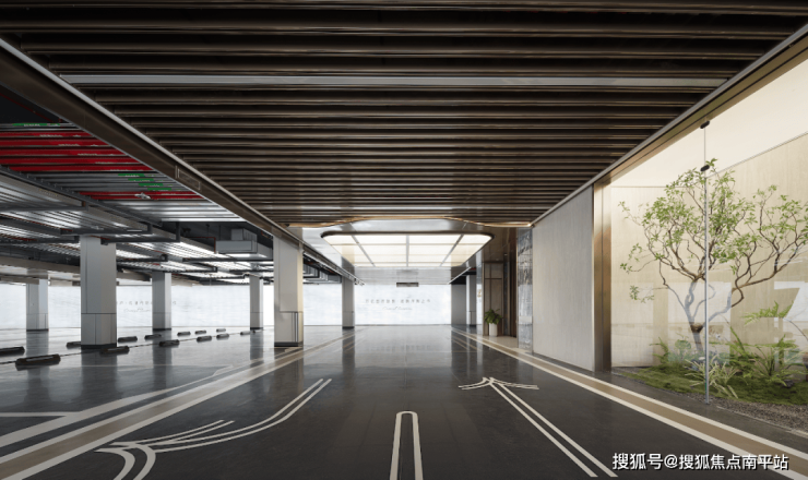 行车道为铝格栅吊顶,车位上方布线采用鲁班奖认证的BIM工艺,吊完顶后层高达到约2.7米,比一般车库的2.6米,高了约10公分。