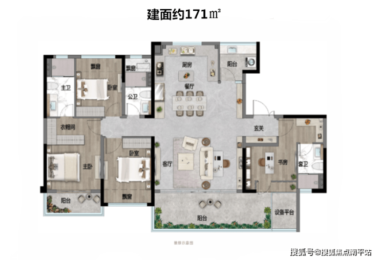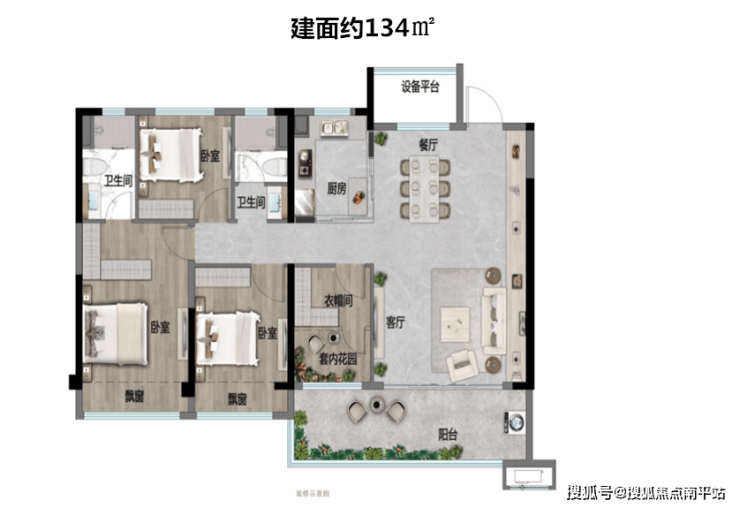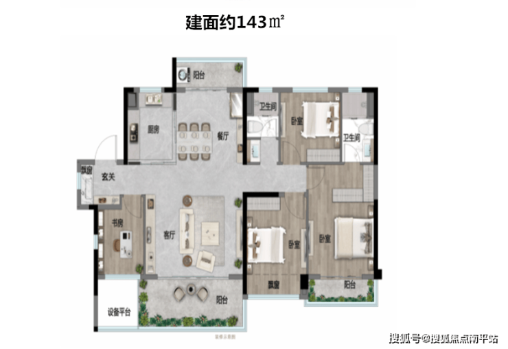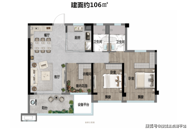 同时,引入创新收纳系统、配备超大南向阔景阳台,可兼顾实用性与景观功能;