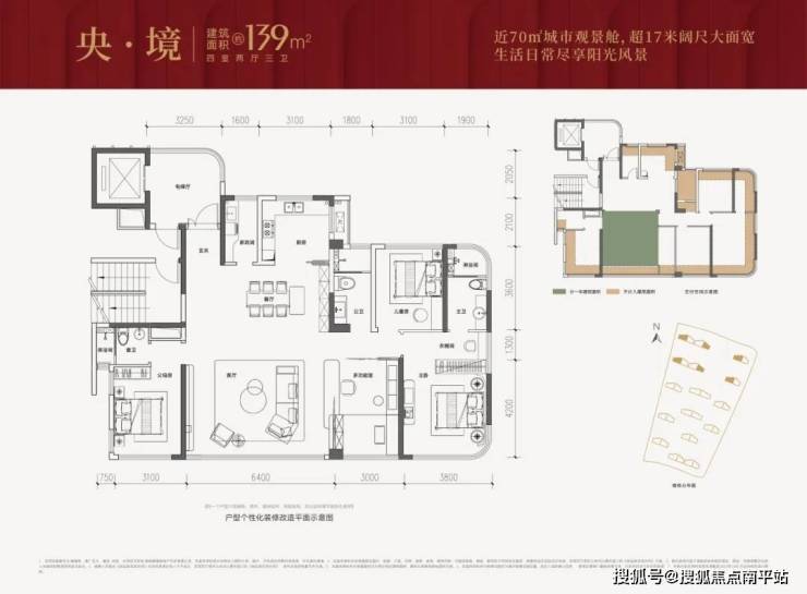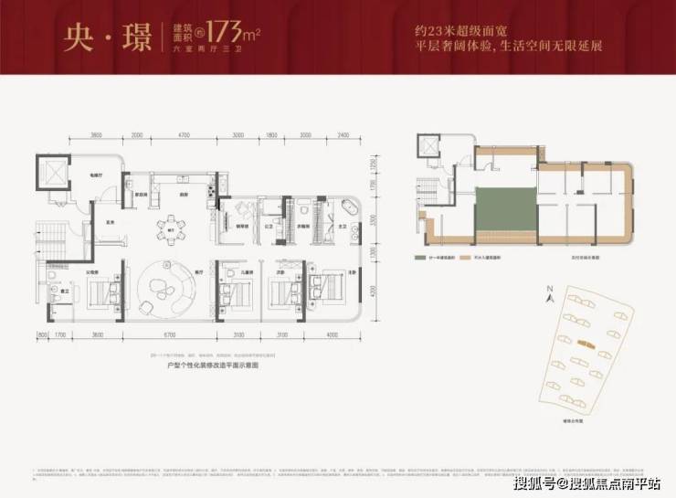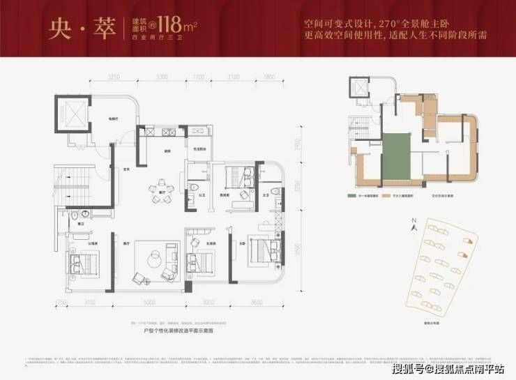 产品 主推约118-173㎡户型,产品得房率直接超110+% ,主卧大手笔采用了 270°全景舱式设计。