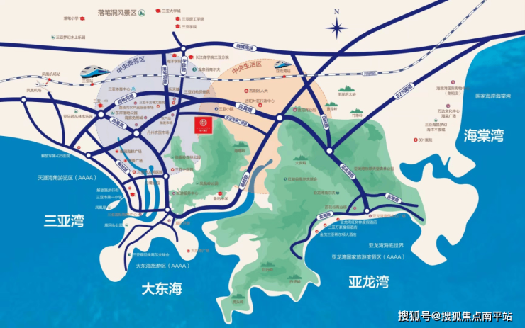 【生态配套】凤凰岭、海螺岭、大安岭、白石岭、白虎岭、三亚湾椰梦长廊、大东海4A级景区、天下第一湾亚龙湾,国家海岸海棠湾。