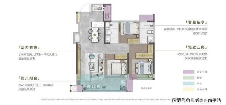 榕发·城启未来的起步产品,面积约89㎡,9.1米超大面宽,主卧自带独立卫浴。