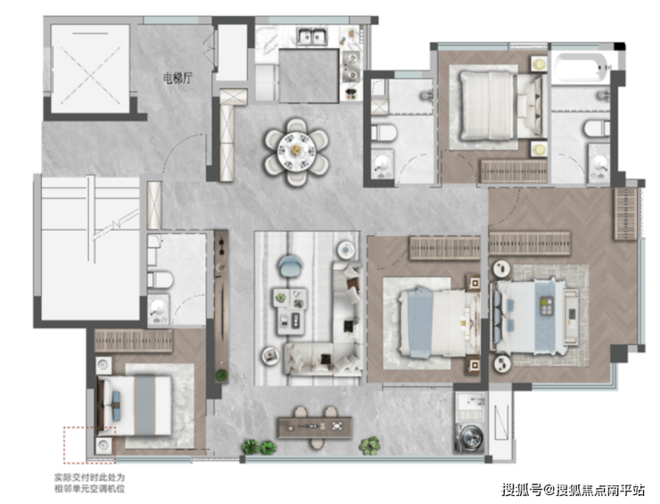 建面约115㎡的产品,3+1配置保证了房间的尺度,以及南北通透。270度的转角主卧窗,这是用于改善豪宅的配置。城启未来的东端业主,在主卧里就可看到鼓山景。