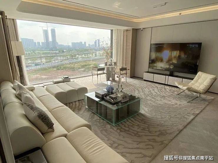 项目近期开放的全景艺术示范区,全面呈现了“慢奢主义”生活场景。主力户型约300平方米滨江大平层,通过超大面宽与全景落地窗设计,实现270°环幕视野,将江景、城市灯光与自然光影无缝引入室内。室内空间由CCD操刀,采用开放式布局,兼顾家庭互动与私密性需求,满足高阶人群对空间功能与美学的双重期待。