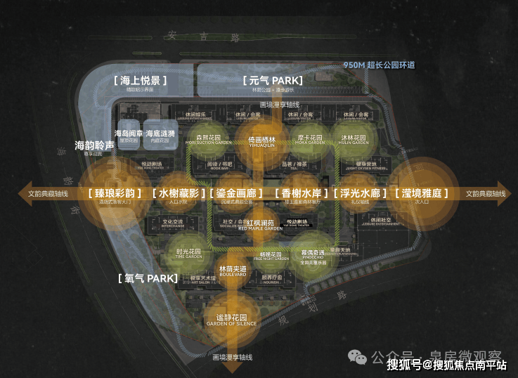 社区规划上,酒店式双主入口,恢弘迎宾界面极具排面;约5万㎡高定园林,构建「一带·两轴·一环·六园·十一馆」景观格局,涵盖下沉式庭院、全景式鎏金画廊、约105米楼王央境艺廊等多个人文艺术场景;整个社区约1472㎡的全域水景,呈现出休闲惬意的滨水度假生活场景;同时,在社区内打造约2500㎡「乐高积木式」架空层泛会所。