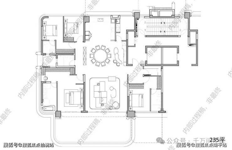 ·高层四代宅235㎡:四房三套卧设计,类独梯独户,带独立玄关柜;主卧、客厅直连270°一线瞰景大露台。