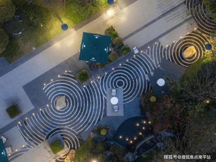 观山花园将场地转化为精神与自然对话的场域,以匠心诠释品质大区。水波纹形态的铺装宛若湘江奔腾的波浪,为场域注入灵动韵律。雅致休闲座椅错落其间,为居者提供静思叙谈的栖心场域。
