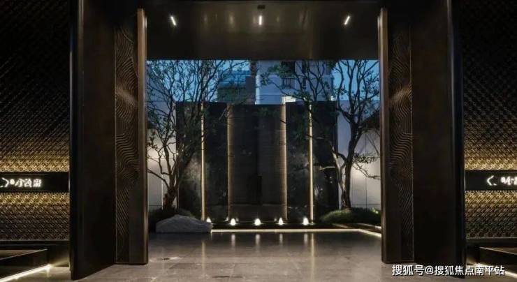 门庭是彰显人文雅致与府院礼序的起点,在院落美学的营造中,我们融合橘子洲的地脉精神,选用温润贝金米黄石材,搭配尊贵铜门与仪式感迎宾水台,构筑精奢酒店式艺术府院的价值封面,于方寸之间尽显东方礼序的庄重雅致。