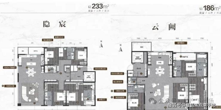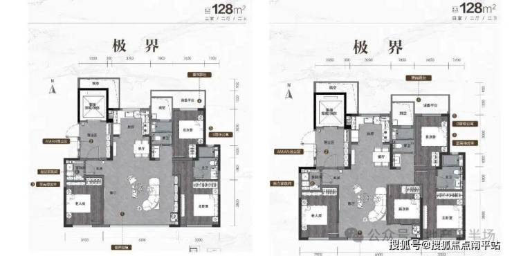 海信君安的首开户型包含舒适实用的建面约128平三/四室两厅两卫,轩敞开阔的建面约143平四室两厅两卫,以及极尽豪奢的建面约186平、建面约233平四室两厅三卫。
