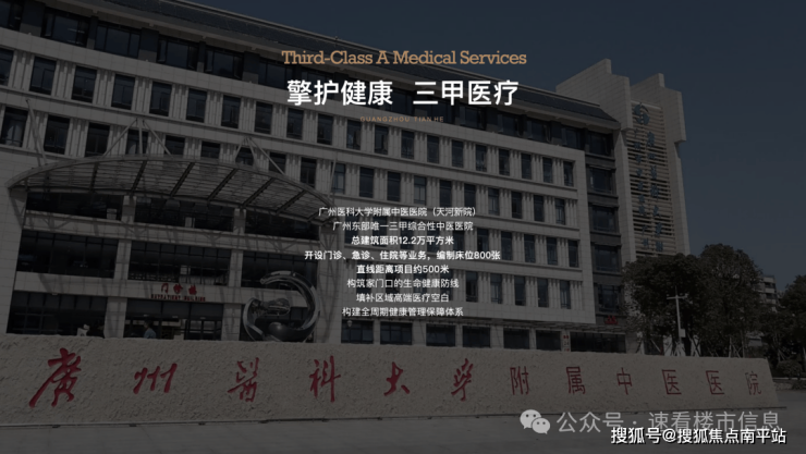 医疗方面,广州医科大学附属中医医院(三甲)约500米,步行即可到达。