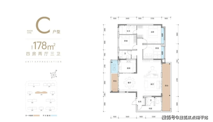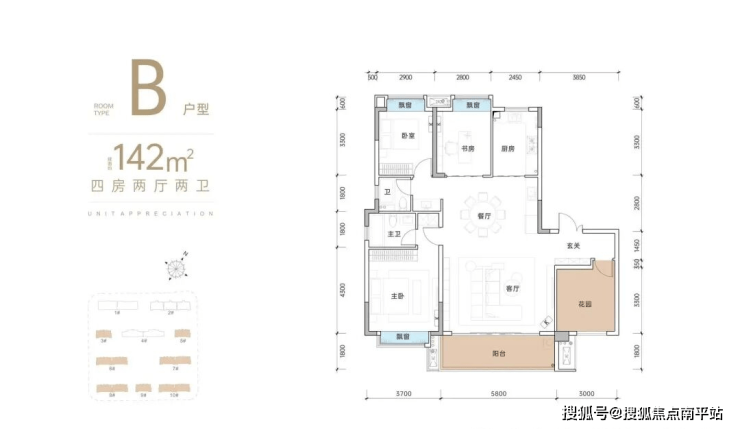 3号栋两梯两户,1个单元。户型142㎡ 15层